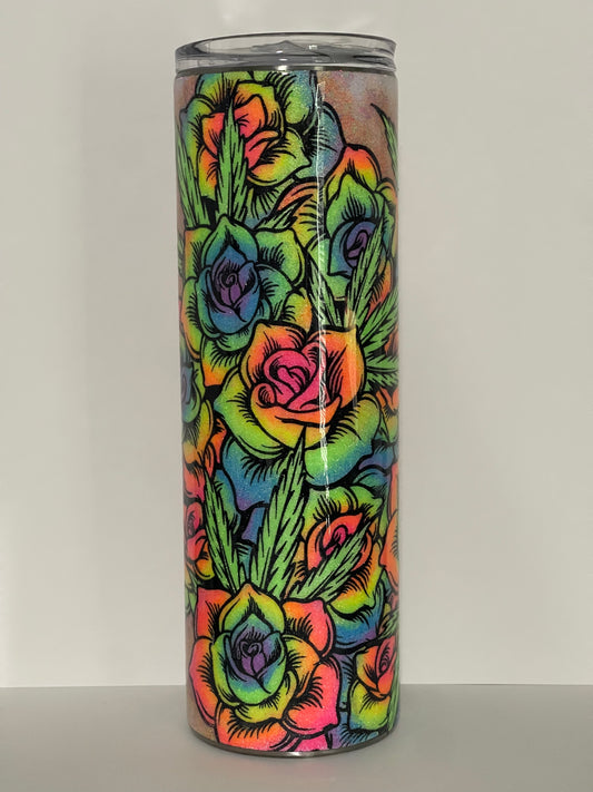 20oz Neon Roses and Leaf Tumbler